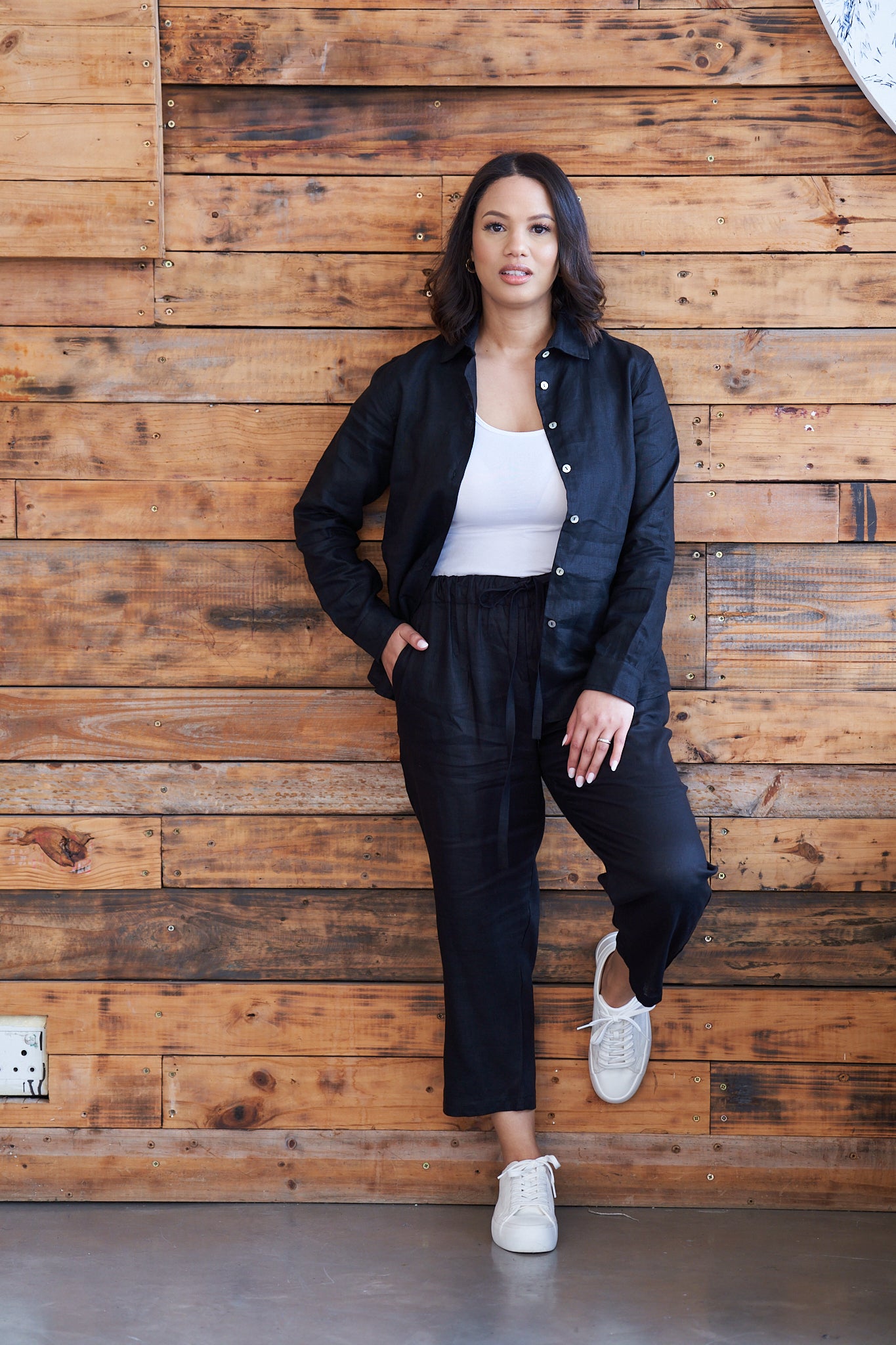 CROPPED LINEN PANTS IN BLACK