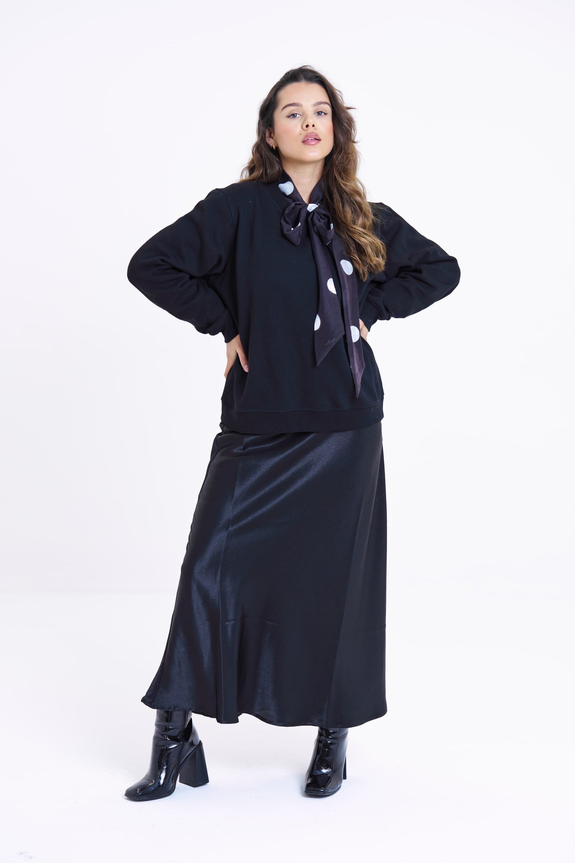 MAXI BIAS CUT SKIRT - BLACK